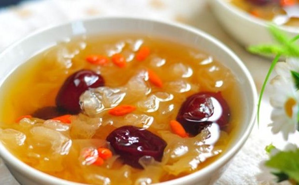 木耳紅棗湯:配料包括茯苓、淮山藥、白木耳或黑木耳)、紅棗,煮熟後再加上些許冰糖,可當茶飲或是甜品。紅棗營養豐富,維生素含量高出蘋果20倍。白木耳含有骨膠原,能增強皮膚的彈性,使皮下組織更豐滿,使皮膚變得細嫩光滑。