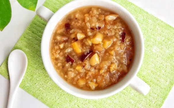 做法:將小米、紅棗洗凈,並將紅棗去核,然後把小米和紅棗一起放入鍋中加入適量清水一起用大火熬煮開,再轉用小火熬至濃稠狀,拌入適量的糖即可食用。