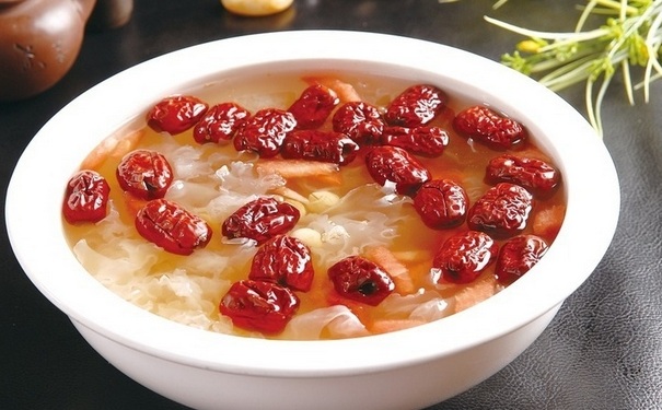 做法:首先就是把雪梨用水洗凈,去皮,切瓣,去核、去蒂這一道程序過後。就把紅棗、陳皮、川貝、冰糖和雪梨一起放到沸水當中,就用中火煮沸然後在轉小火煮四十分鐘的時間即可。